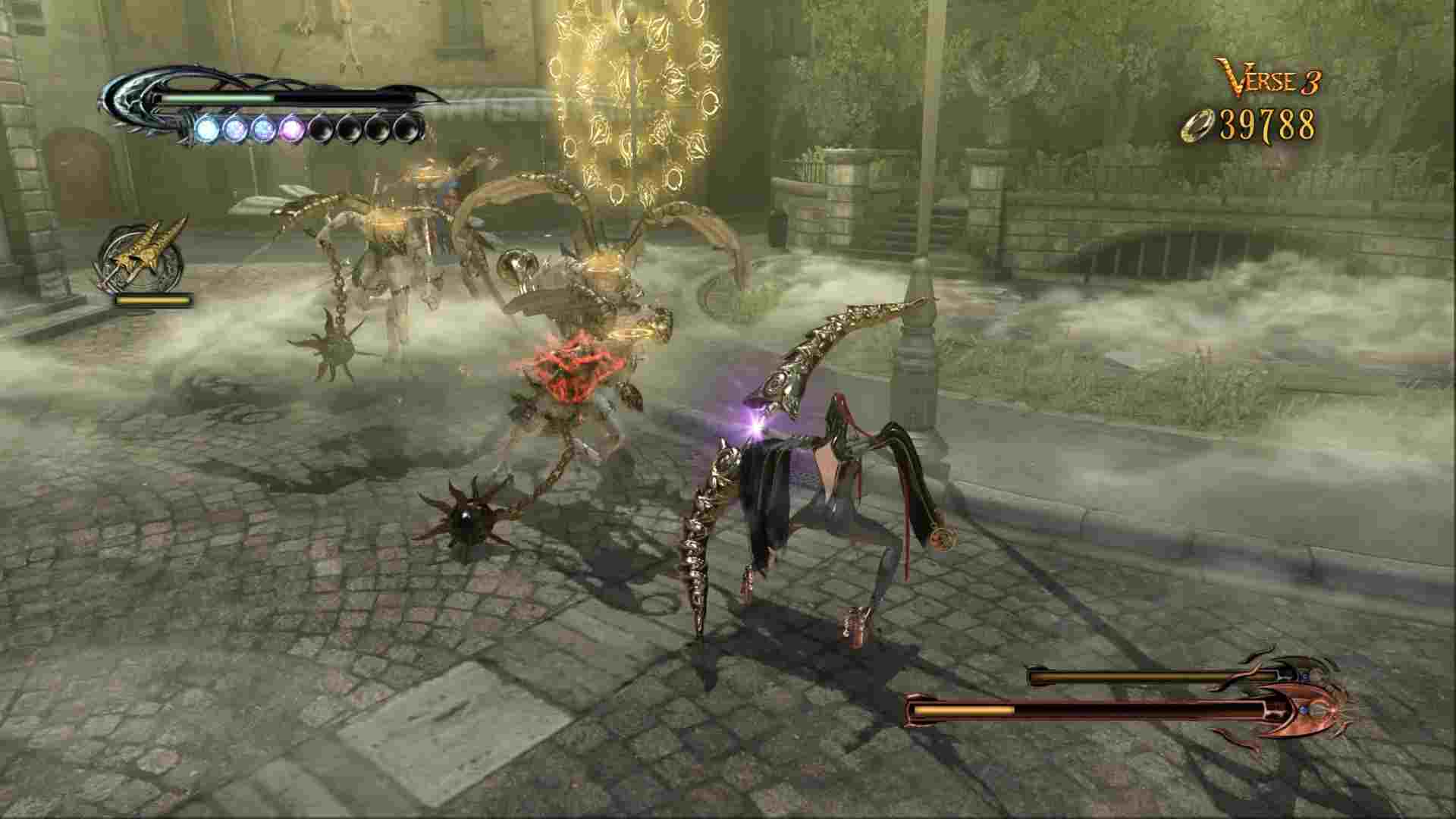 - Take advantage of Bayonetta’s arsenal of skills to hack, slash, and open fire upon hordes of celestial foes.