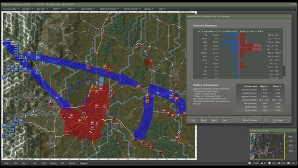 In this complex battlespace, the player's efforts are constantly tested by modeled features such as Electronic Warfare, Air Superiority, and Realistic Weather. You'll also need to consider Line of Sight and Fire, Terrain and Elevation, Smoke and Mines, and human factors like training, morale, and readiness. To help you master the situation and understand your force's capabilities, the game provides a variety of information dialogs, map overlays, and range rings.