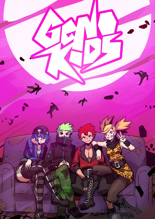 Genokids est un jeu sur la MOTIVATION, un hack&slash au rythme effréné où un groupe de musiciens s'attaque à une invasion extraterrestre !