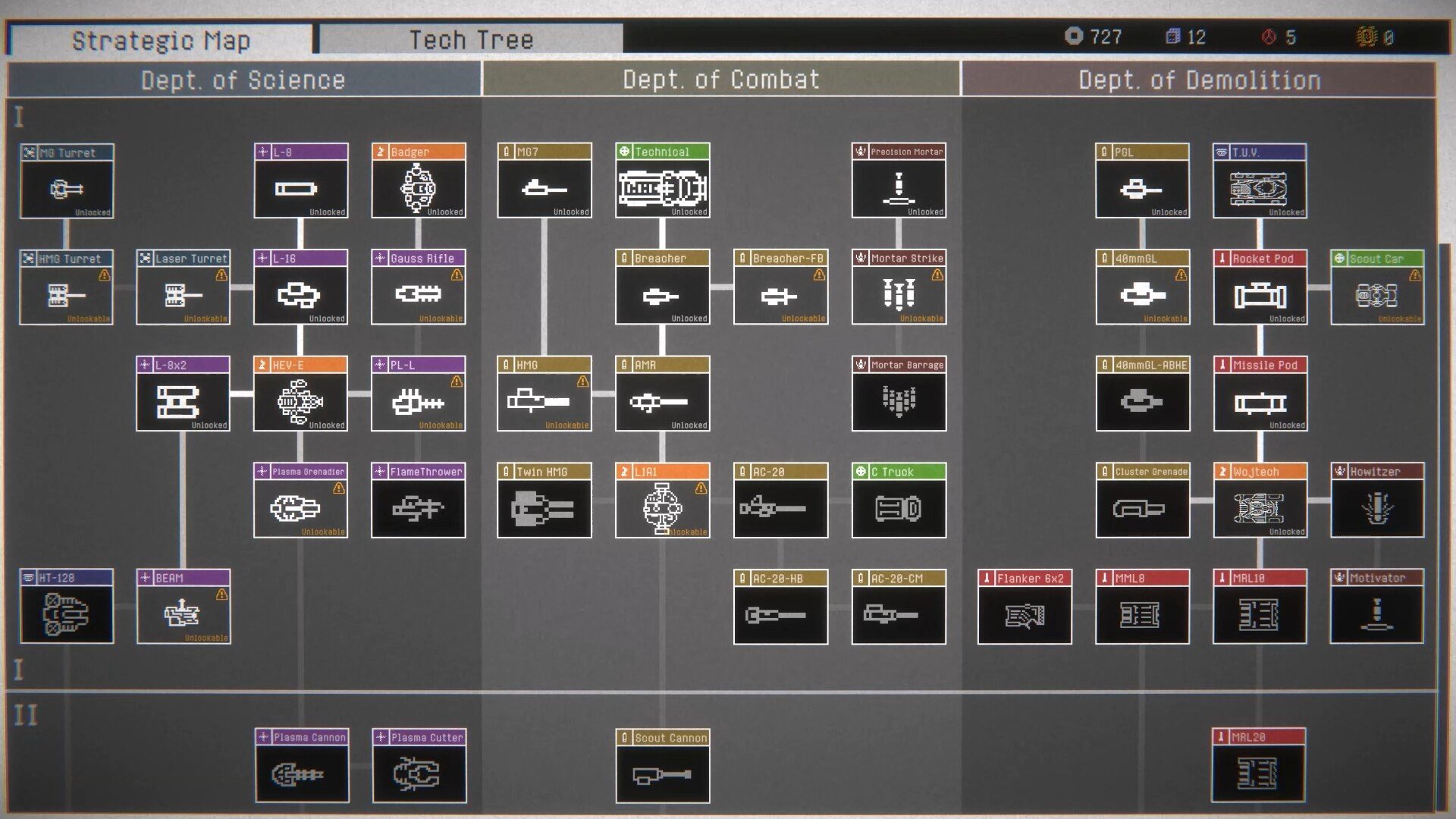 Investissez dans le déblocage d'équipements de haute technologie tels que les lasers, les canons à rail et les mécas expérimentaux. Vous pouvez aussi opter pour des barrages de missiles et des chars d'assaut.